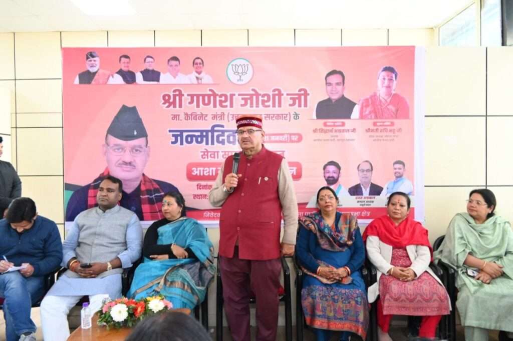 समारोह को संबोधित करते हुए कैबिनेट मंत्री गणेश जोशी ने कहा कि यह अवसर उनके लिए अत्यंत गर्व और सम्मान का विषय है। उन्होंने कहा कि समाज की वास्तविक ताकत आशा कार्यकर्ता बहनें हैं, जो निस्वार्थ भाव से गांव-गांव और घर-घर जाकर जनसेवा का कार्य कर रही हैंमंत्री