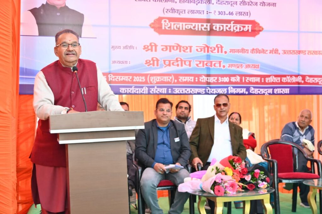 कैबिनेट मंत्री गणेश जोशी ने आज मसूरी विधानसभा क्षेत्र के हाथीबड़कला़ स्थित शक्ति कॉलोनी में ₹303.46 लाख की लागत से स्वीकृत सीवरेज योजना का विधिवत शिलान्यास किया। इस परियोजना के पूरा होने से क्षेत्र के 1300 से अधिक परिवारों को सीवरेज समस्या से राहत मिलेगी।